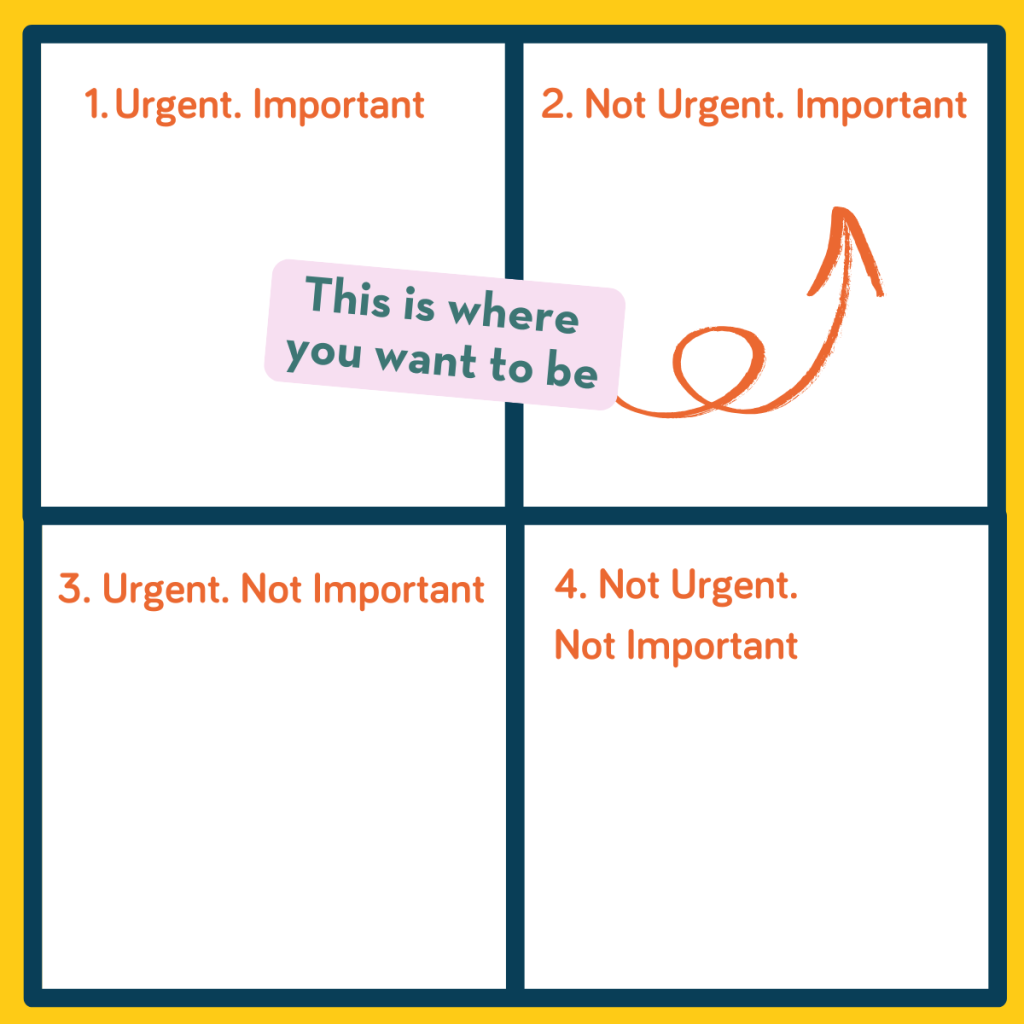 This is where you’re doing all that firefighting. Where the sense of overwhelm comes from. When everything is Urgent and Important – and feels like it too.